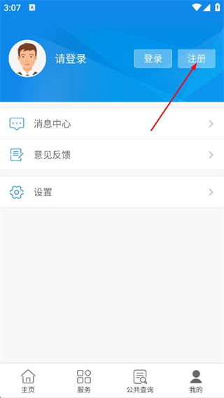 2、在個人中心頁面,點擊注冊按鈕,進入用戶注冊頁面。
