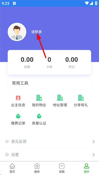 2、在個人中心頁面,點擊請登錄區域,進入登錄頁面。