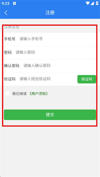 4、在注冊頁面,填寫信息并勾選協議后,點擊提交完成注冊。