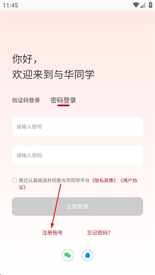 3、在登錄頁面,點擊注冊賬號選項,進入注冊頁面。
