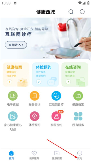 1、在健康西城首頁,點擊底部的我的選項,進入登錄頁面。