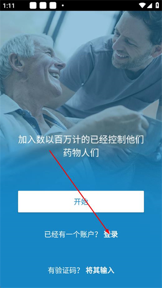 1、打開medisafe用藥助手app,在初始頁面點擊登錄,進入登錄頁面。