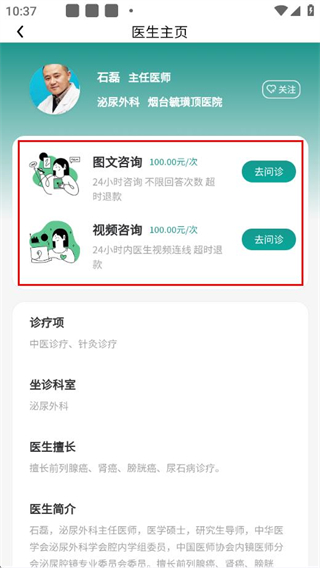 3、在醫生主頁選擇問診方式,點擊去問診,即可進入問診流程。